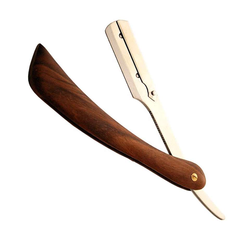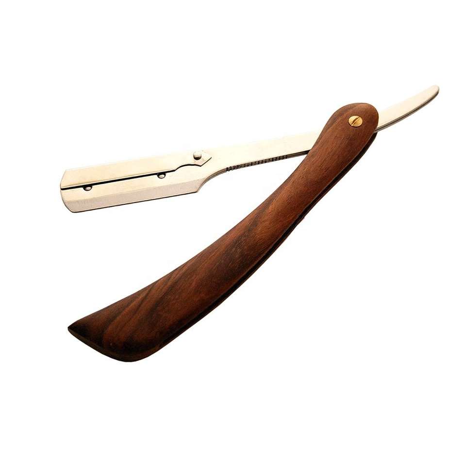 มีดโกนสำหรับผู้ชายมีดโกนหนวดแบบมีขอบตรงด้ามจับไม้มีดโกนแบบใช้มือคุณภาพสูงสำหรับใช้ขัดผิวหน้า