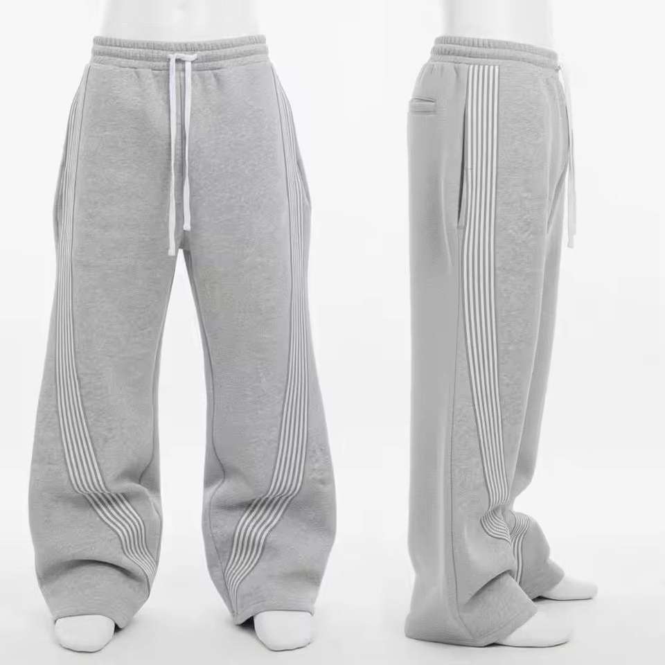 กางเกงวอร์มสตรีทแวร์ผู้ชายคุณภาพสูง ปักโลโก้ได้ ทรงขาตรง ผ้าฟลีซเนื้อนุ่ม กันน้ำ ผ้าฝ้าย 100% ล้างทำสี
