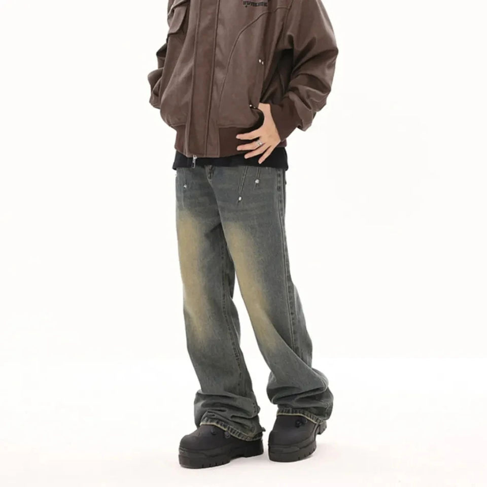 กางเกงยีนส์ผู้ชายทรงตรง คุณภาพสูง ผ้าสเตรช ระบายอากาศได้ดี สไตล์สตรีทแวร์ ลุคสบายๆ ล้างสีแบบดิสเทรส เหมาะสำหรับฤดูหนาว