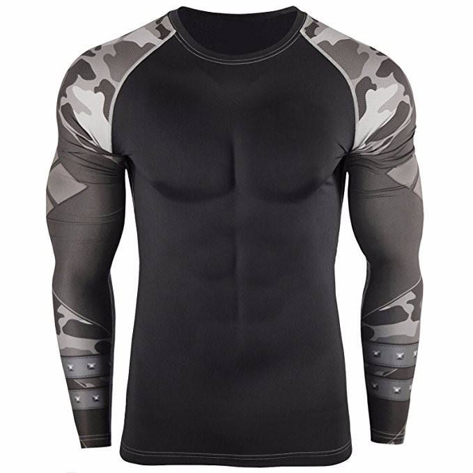 เสื้อรัดรูปแขนยาวผ้าสแปนเด็กซ์พิมพ์ซับลิเมชันสำหรับผู้ชายเสื้อแรชการ์ดแบบแห้งเร็ว