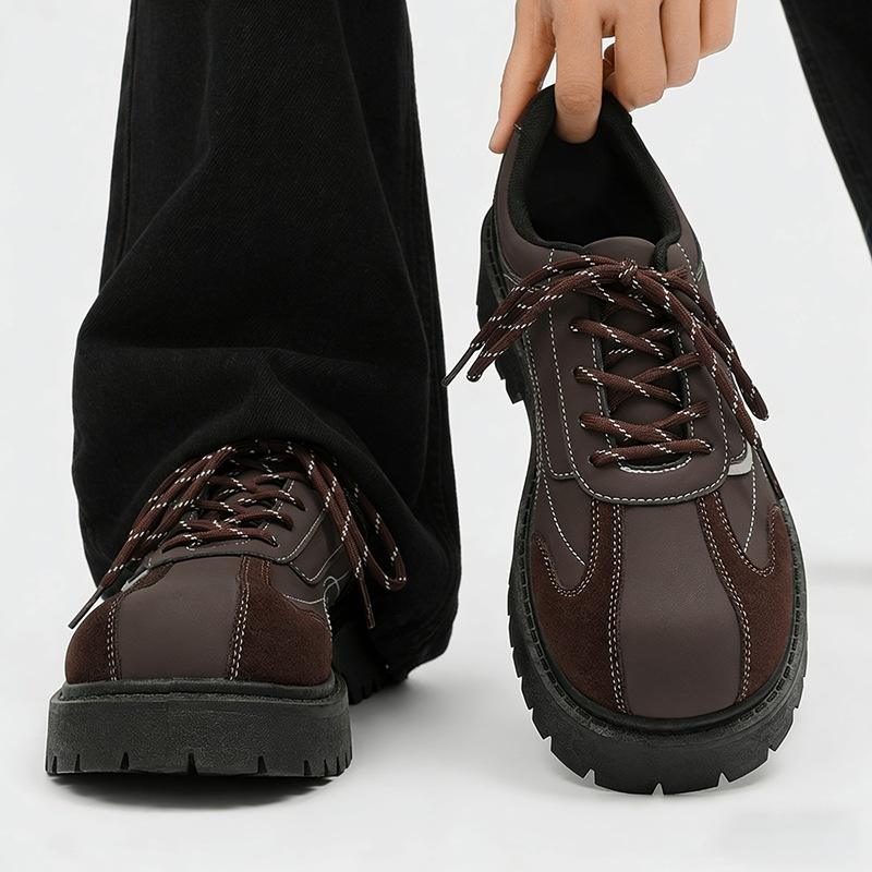 รองเท้าผ้าใบหนังกลับคุณภาพสูงสำหรับผู้ชาย แบบดีไซน์ Derby พื้นหนา กันลื่น ระบายอากาศได้ดี เหมาะสำหรับเดิน