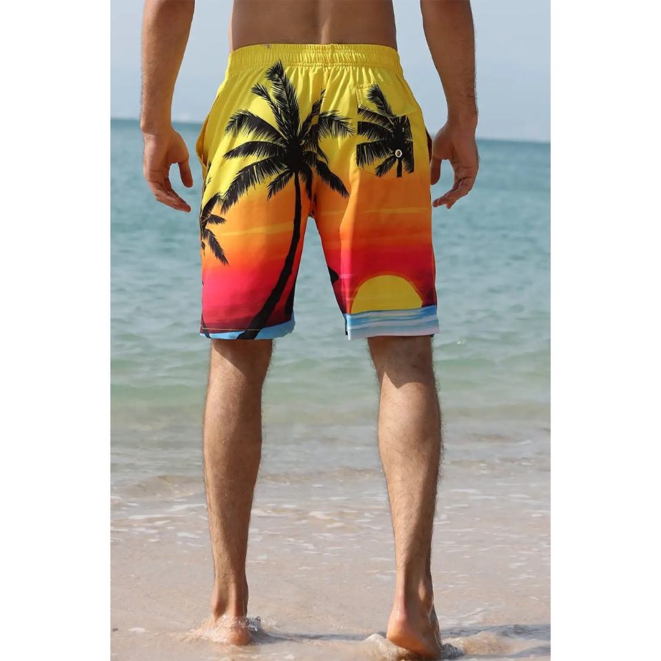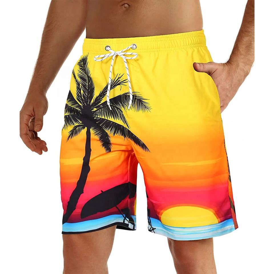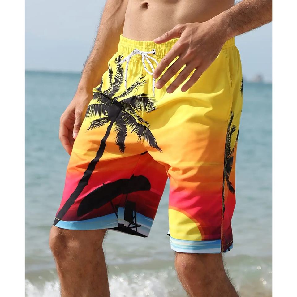 กางเกงขาสั้นสำหรับเดินชายหาดของผู้ชายกางเกงว่ายน้ำแบบผูกเชือกเอวปานกลางแบบลำลองกันน้ำระบายอากาศได้ดีในฤดูร้อน