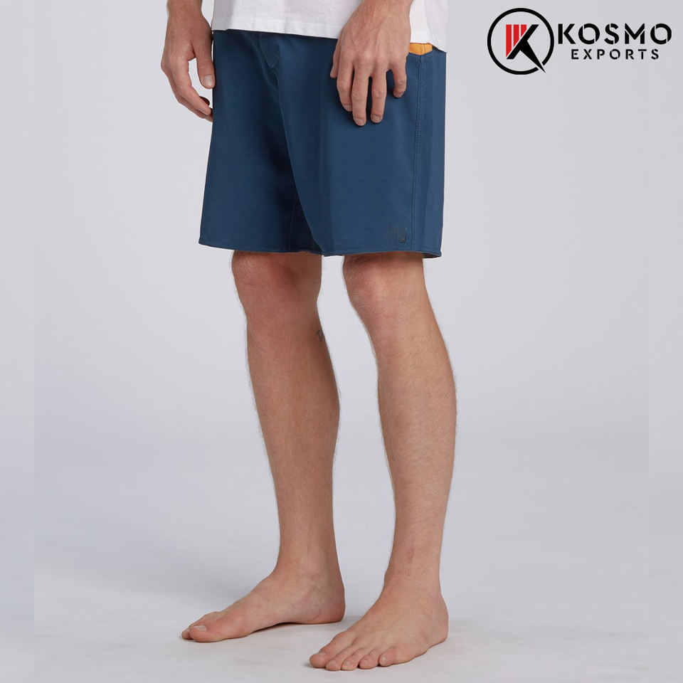 กางเกงขาสั้นชายหาดสำหรับผู้ชายสีฟ้า-ส้มทูโทนผ้าฝ้าย100% สไตล์ลำลองผ้าใยสังเคราะห์กันน้ำ