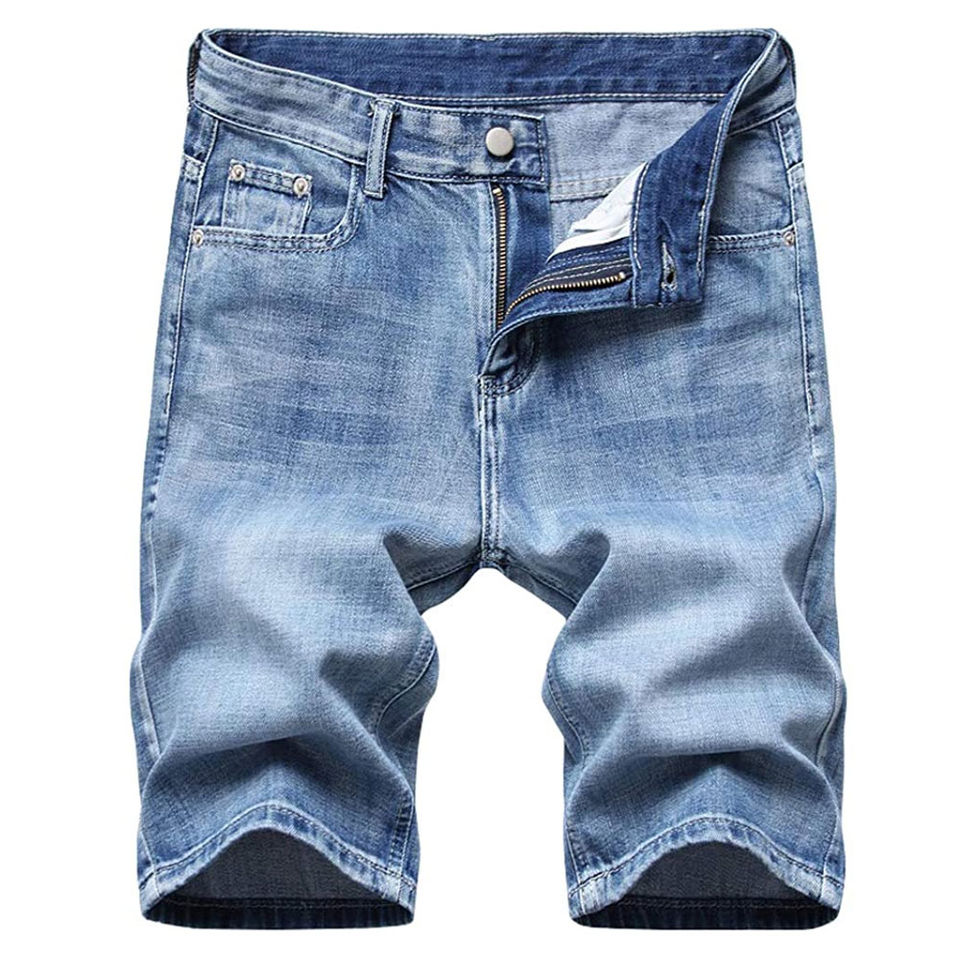กางเกงขาสั้นผ้ายีนส์สำหรับผู้ชายคอลเลคชั่นฤดูร้อนทรงหลวมสีพื้นแบบถักเอวสูงแบบลำลอง