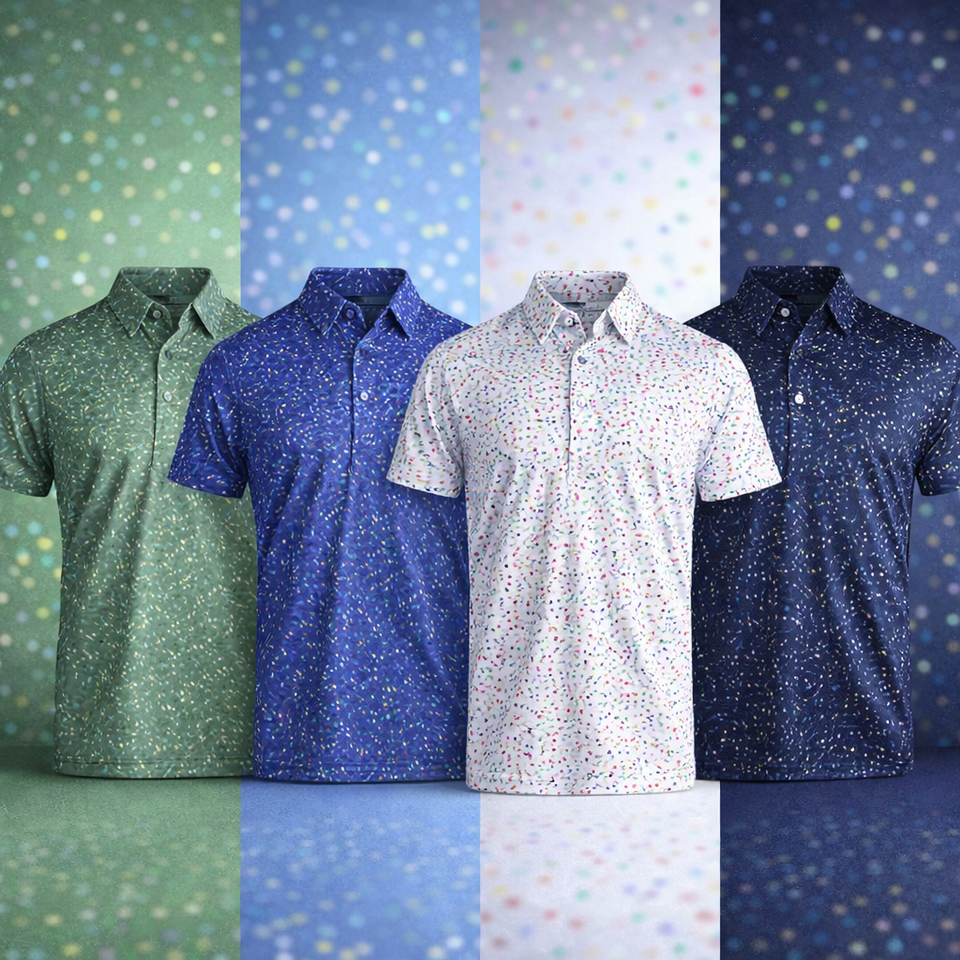 เสื้อโปโลผู้ชายเสื้อโปโลลำลองแขนสั้นพิมพ์ลายดิจิตอลเสื้อโปโลกอล์ฟ