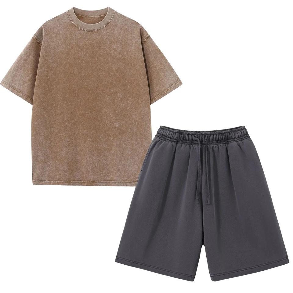 ชุดเสื้อยืดคอกลมสำหรับผู้ชายชุด100% คอกลมและกางเกงขาสั้นผ้าฝ้ายระบายอากาศแบบลำลองผลิตในปากีสถาน