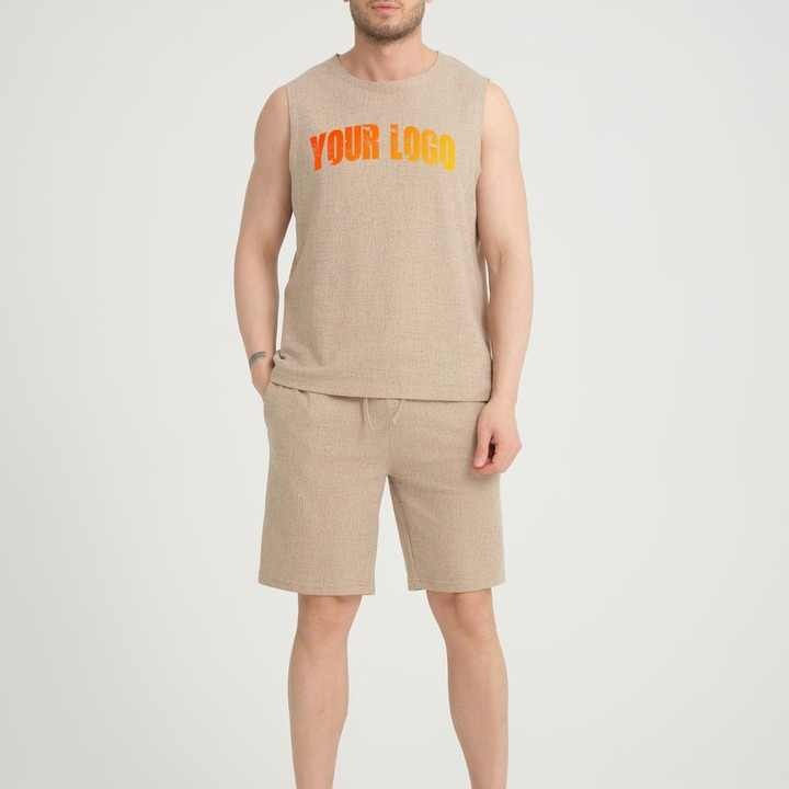 ชุดกางเกงขาสั้นแขนกุดขาสั้นสำหรับผู้ชายกางเกงขาสั้นทรงเข้ารูปแบบลำลองปักโลโก้