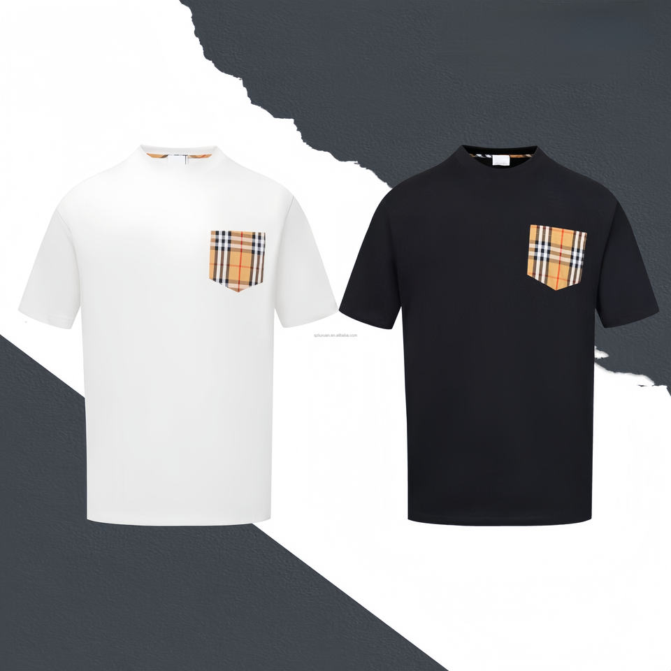 เสื้อเชิ้ตผู้ชายคุณภาพสูงสำหรับฤดูร้อน ทรงเข้ารูป ผ้าฝ้ายทอ 100% แห้งเร็ว สไตล์วินเทจ ติดกระดุม ลำลอง สีพื้น แต่งริบบิ้น Burberry ชิค แขนสั้น