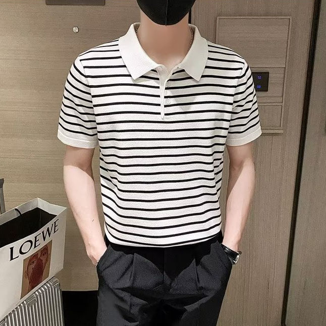 เสื้อโปโลผ้าไหมคุณภาพสูงผ้าสแปนเด็กซ์กันรอยยับสีเข้มและสี6XL ขนาดพร้อมปลอกคลาสสิกเข้ารูป