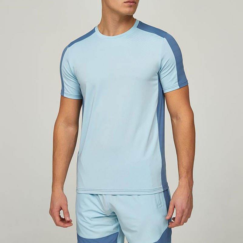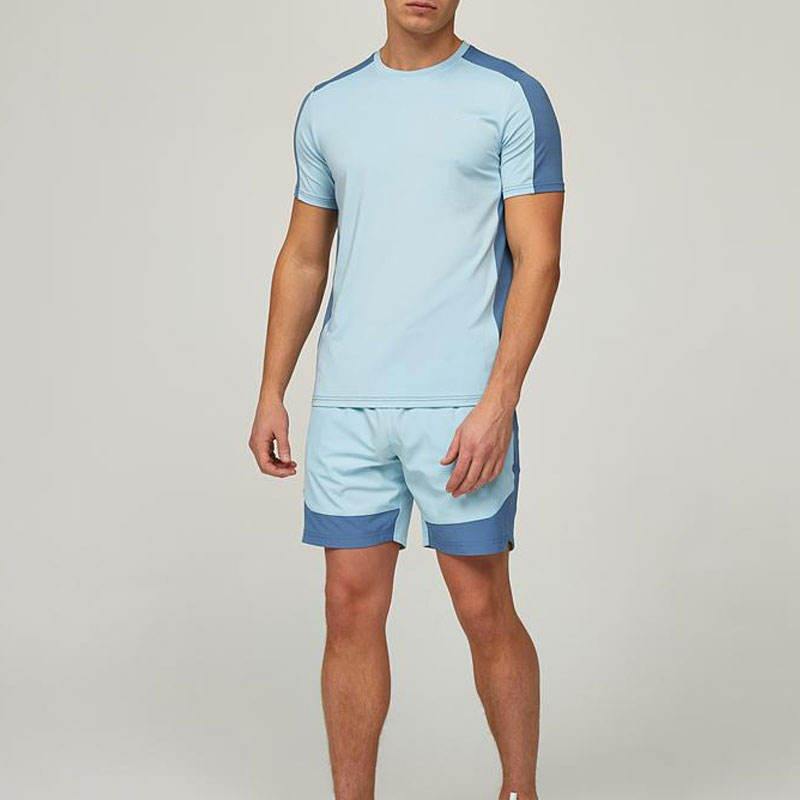 ชุดเซ็ตสองชิ้นสำหรับผู้ชายคุณภาพสูงสำหรับฤดูร้อน ชุดกีฬาแห้งเร็ว ระบายอากาศได้ดี กางเกงขาสั้นและเสื้อยืดสำหรับวิ่ง