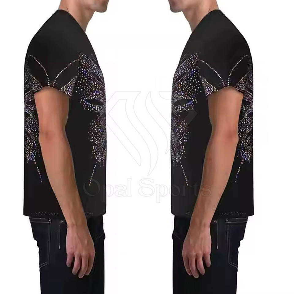 High Quality Men's T Shirts 100% Cotton and Polyester with Men's Rhinestones OEM Service Available