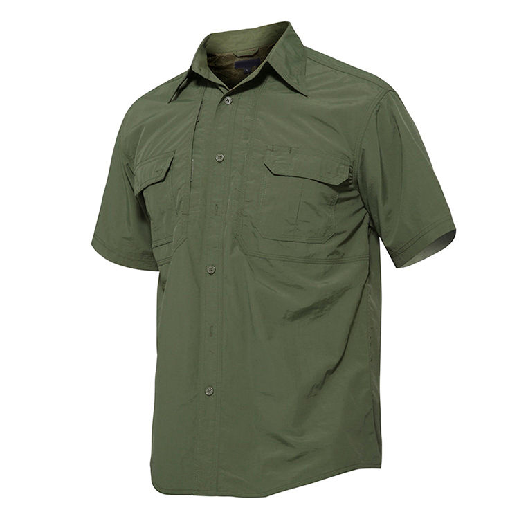 เสื้อเชิ้ตผู้ชายคุณภาพสูงสำหรับกิจกรรมกลางแจ้ง แนวทหาร ลำลอง ใส่ทำงานได้ แห้งเร็ว มีซิป คอปกสี่เหลี่ยม ปรับแต่งได้