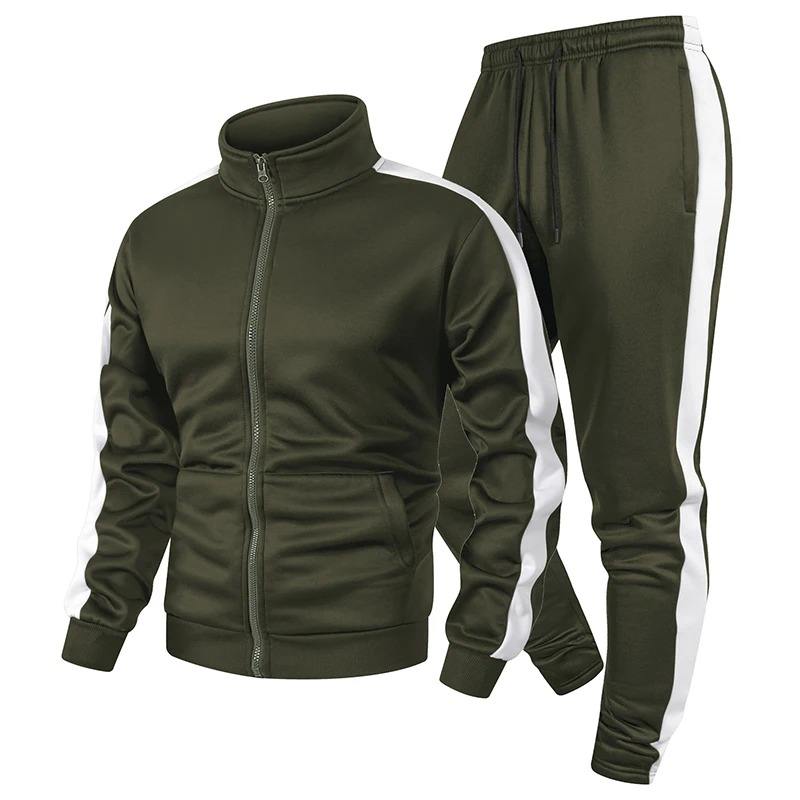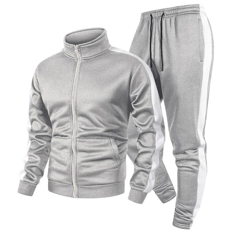 ชุดวอร์มผู้ชายคุณภาพสูง ชุดออกกำลังกายฤดูใบไม้ร่วง ชุดกีฬาลำลอง เอวยางยืด ซิปเต็มตัว