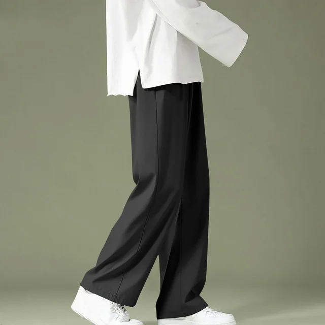 High Quality Men's Vintage Mid Waist Casual Wide Leg Trousers Long Pant with Zipper Fly Wrinkled Look ODM Supply