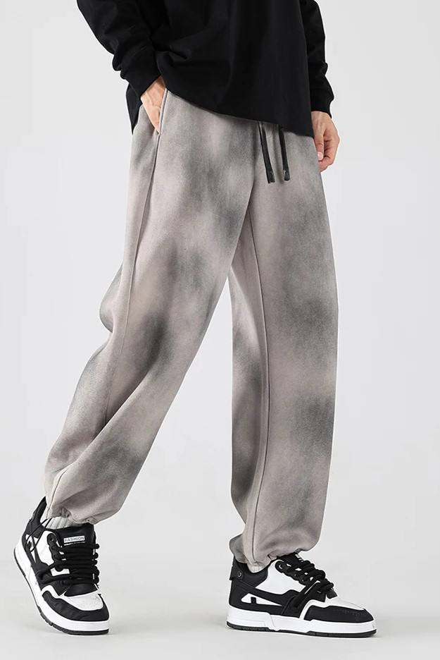 กางเกงวิ่งขายาวผ้าเกล็ดปลาแบบวินเทจของผู้ชายกางเกงวอร์มขาบานแบบสั่งทำปักลาย