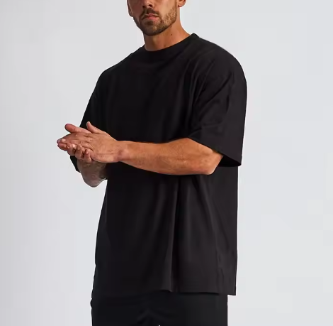 เสื้อยืดสีขาวของผู้ชายคอตั้งหนาผ้าฝ้าย100% ปรับแต่งได้โอเวอร์ไซส์ไซส์ผ้าบ็อกซี่เฮฟวี่เวท