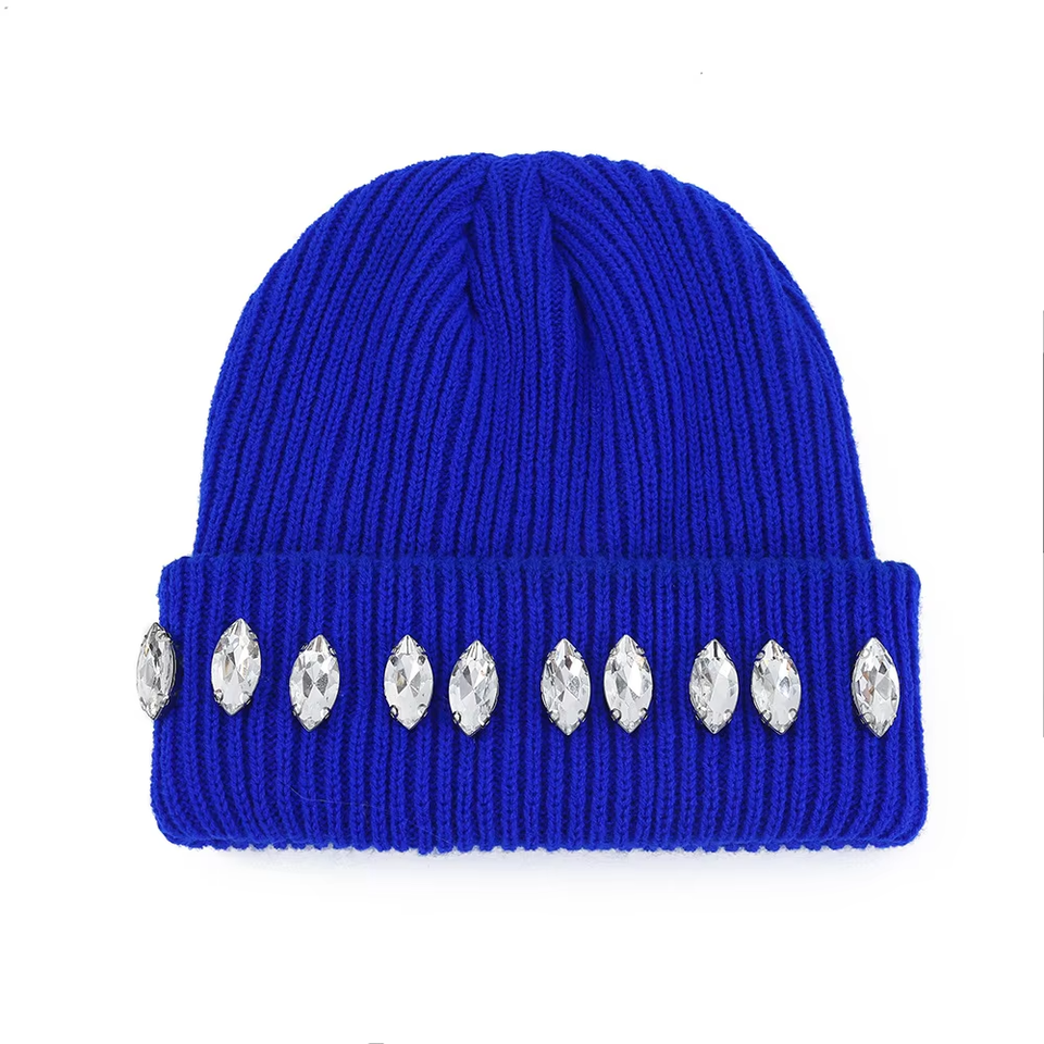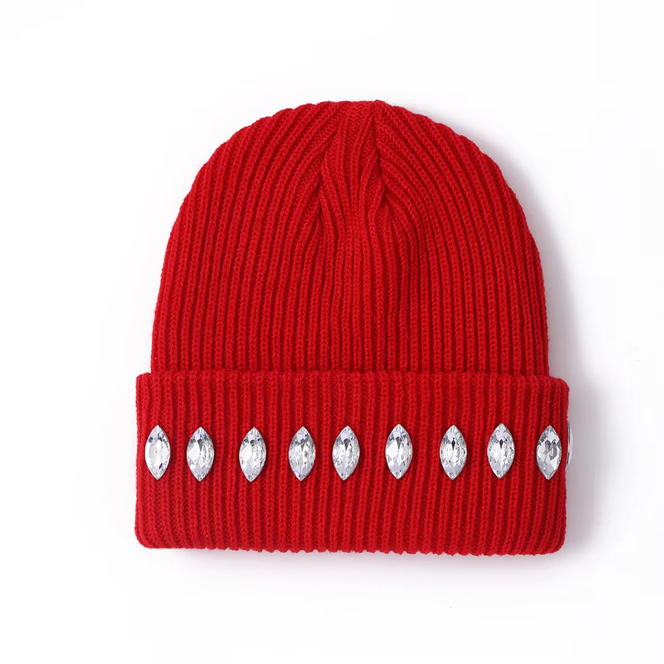 หมวกบีนนี่ไหมพรมคุณภาพสูงสำหรับผู้ชาย ประดับคริสตัล พร้อมโลโก้และดีไซน์แบบกำหนดเอง หมวกบีนนี่คริสตัลระดับพรีเมียมสำหรับทุกเพศ