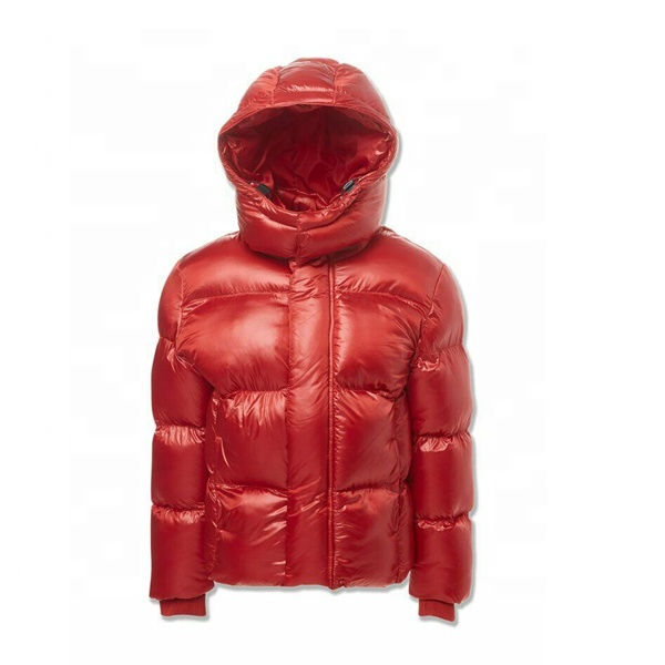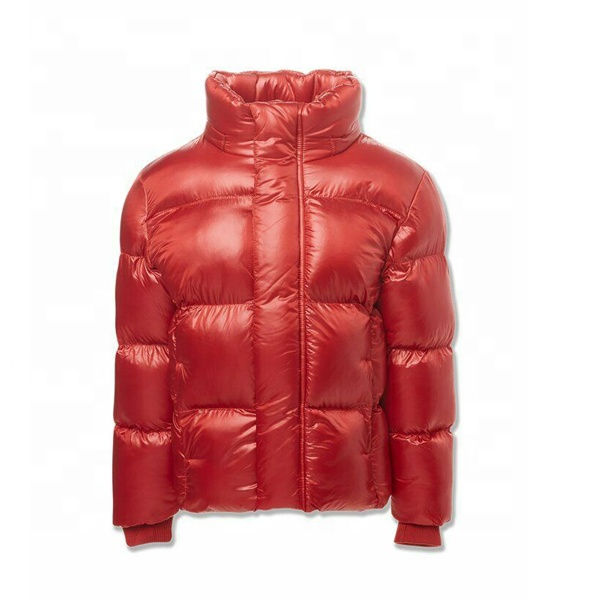 เสื้อแจ็คเก็ตพัฟเฟอร์ผู้ชายคุณภาพสูงสำหรับฤดูหนาว ระบายอากาศได้ดี กันน้ำ แบบสองด้าน สกรีนโลโก้ด้านหน้า คอตั้ง แบบเสื้อแจ็คเก็ตพารา