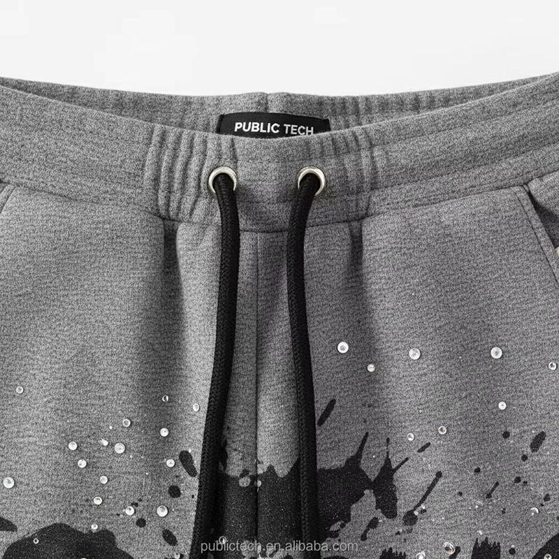 กางเกงวอร์มลำลองผู้ชายคุณภาพสูงสำหรับฤดูหนาว เนื้อผ้าหนา เอวยางยืด สไตล์ฮิปฮอป ทรงหลวม ความยาวปานกลาง พร้อมลายตัวอักษร
