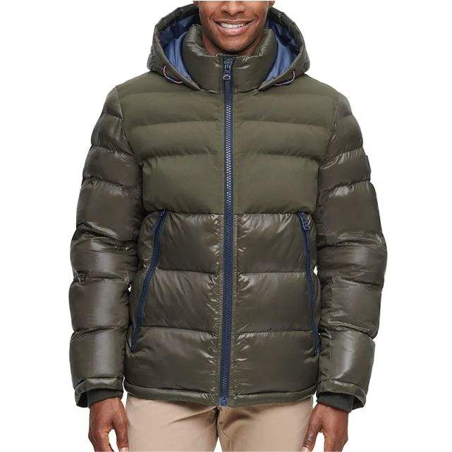 แจ็กเก็ตขนเป็ดคุณภาพสูงสำหรับผู้ชายมีปกตั้งสำหรับฤดูหนาวโลโก้หน้าสินค้าใหม่