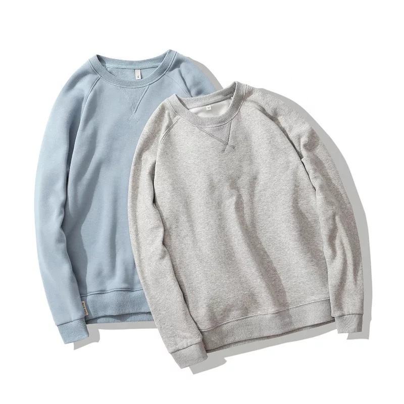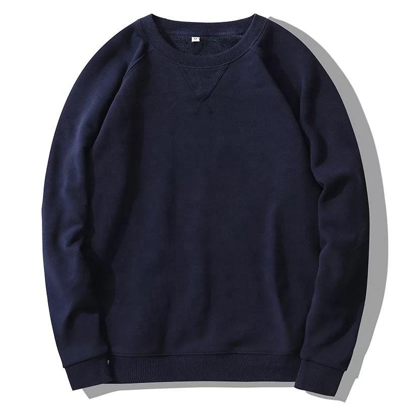 เสื้อสเวตเชิ้ตคอกลมแขนยาวบุขนหนานุ่มคุณภาพสูงสำหรับผู้ชาย ลายเรียบ สกรีนโลโก้ได้ เป็นมิตรกับสิ่งแวดล้อม