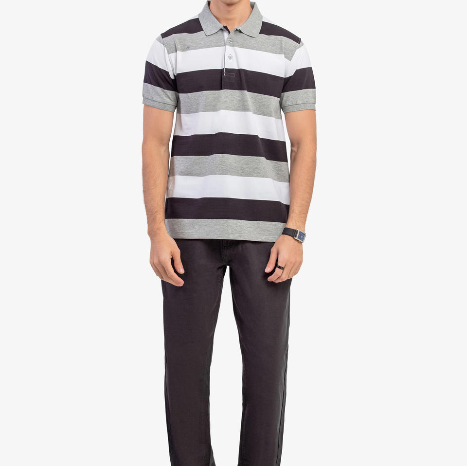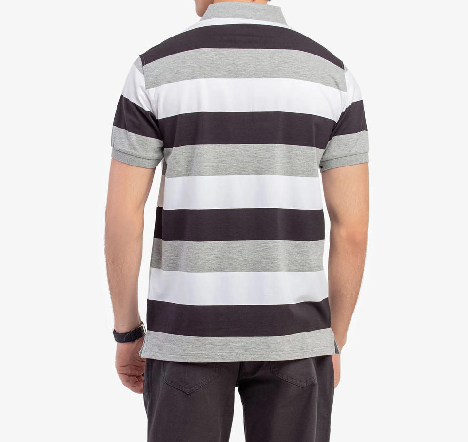 เสื้อยืดผู้ชายคุณภาพสูง ผ้าคอตตอนผสมโพลีเอสเตอร์ 260GSM ลายทางเรียบ แขนสั้น ทรงปกติ แห้งเร็ว ระบายอากาศได้ดี