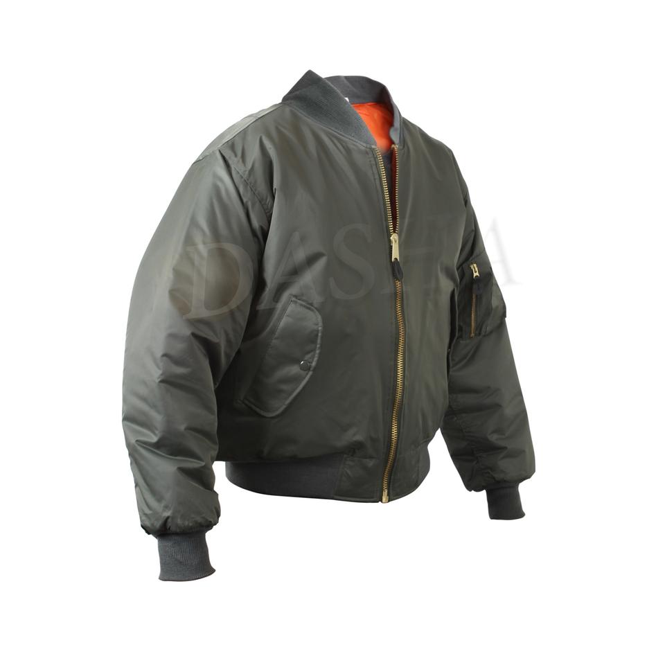 แจ็กเก็ตนักบินบอมเบอร์สำหรับผู้ชายเสื้อกันลมแบบถักสำหรับฤดูหนาวคุณสมบัติสีเขียวเข้มขนาดพิเศษ