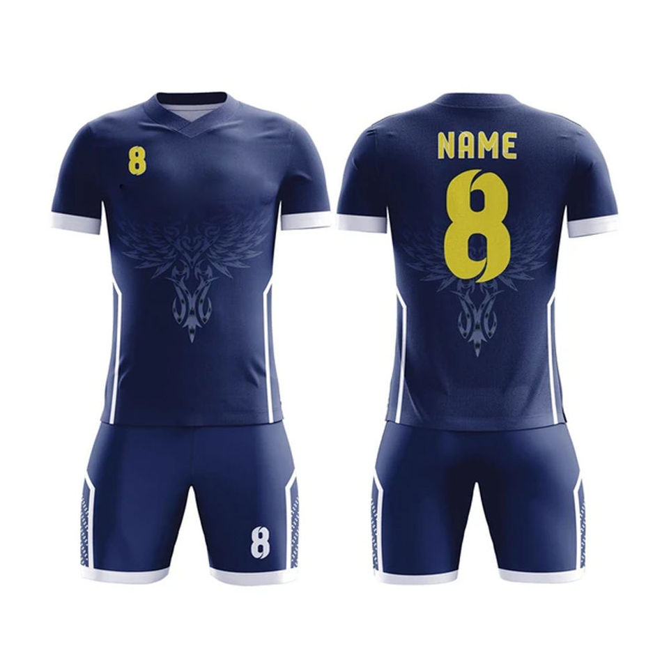 ชุดฟุตบอลคุณภาพสูงราคาประหยัดสำหรับผู้ชาย พร้อมโลโก้ทีม ดีไซน์แบบซับลิเมชั่นสั่งทำพิเศษ นำเข้าโดย Dress Sports