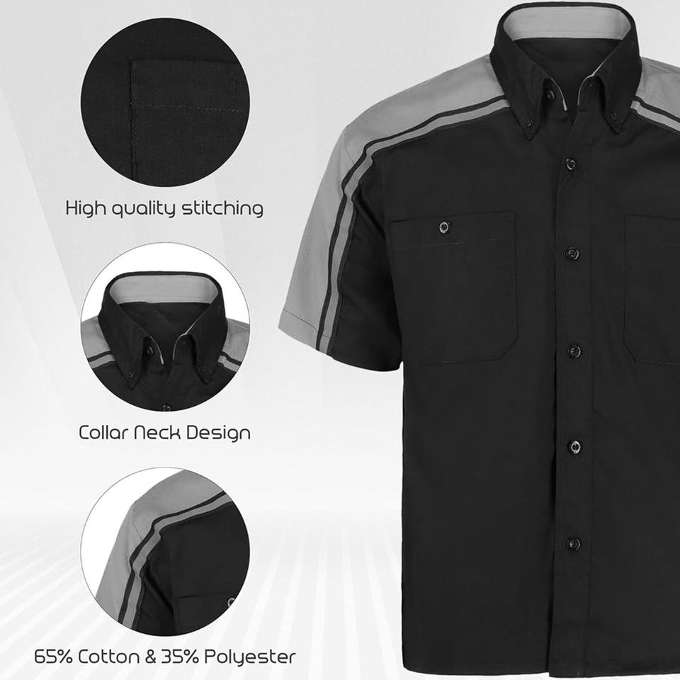 เสื้อทำงานแขนสั้นผ้าฝ้ายผู้ชายพร้อมตัวเลือกการปรับแต่งสำหรับใช้ในอุตสาหกรรมและความต้องการสร้างแบรนด์