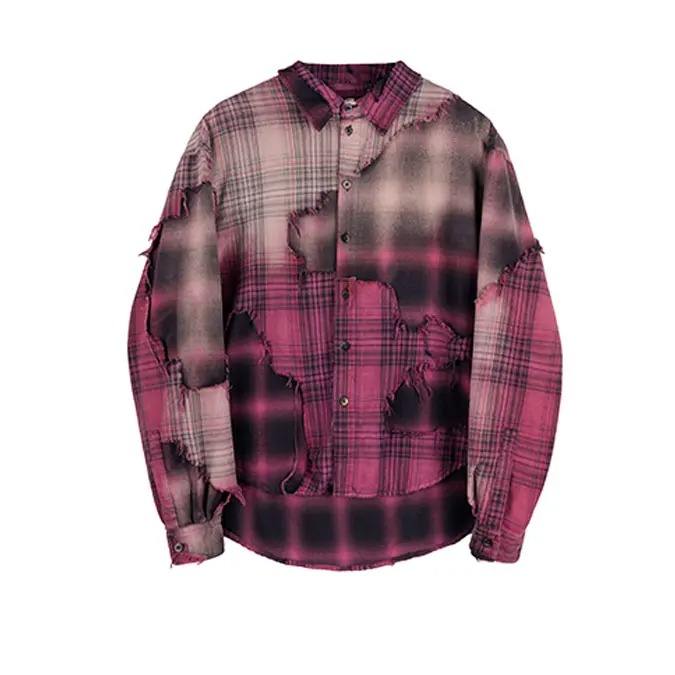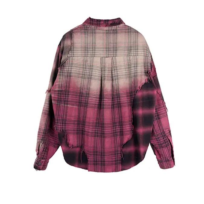 เสื้อเชิ้ตผ้าสักหลาดแขนยาวสำหรับผู้ชายเสื้อลายตารางไซส์ใหญ่พิเศษลายตารางสำหรับผู้ชาย
