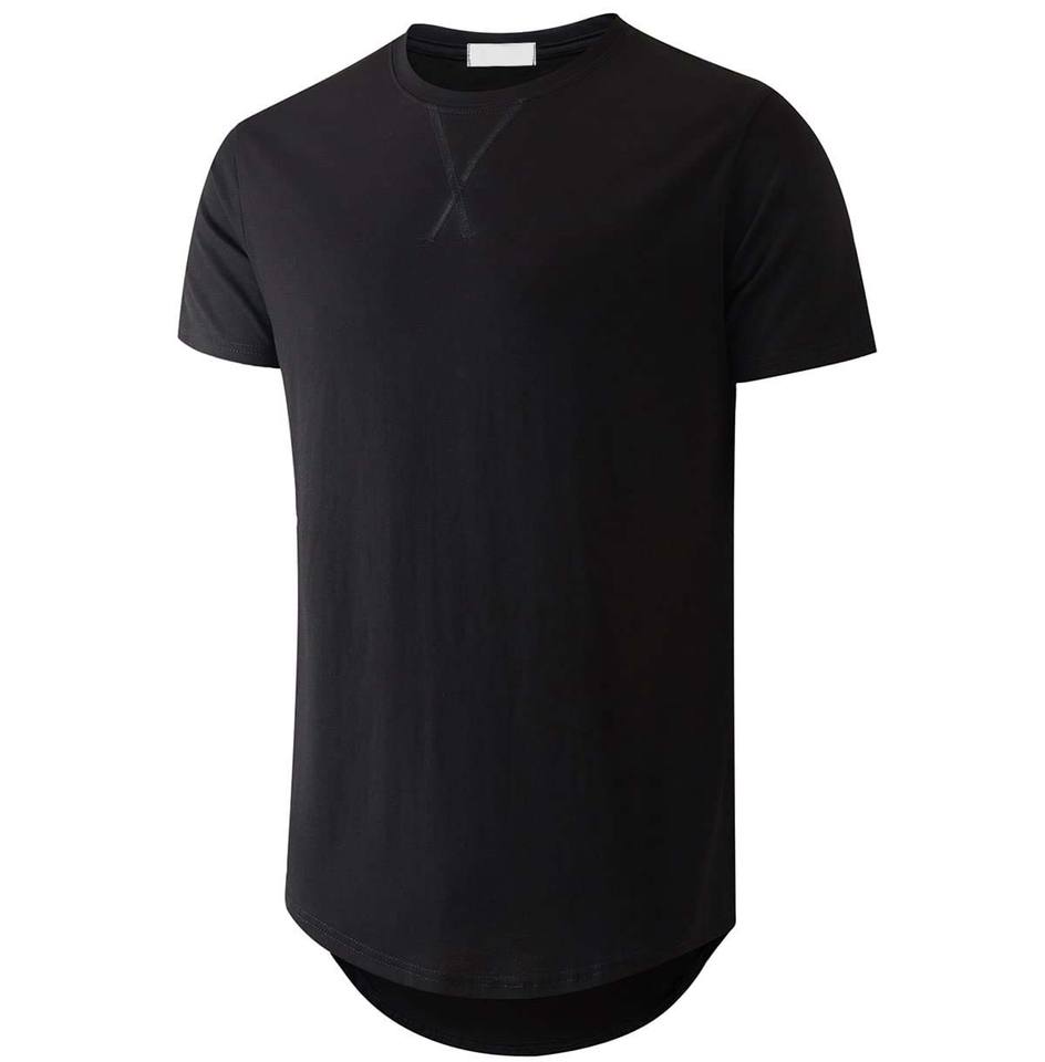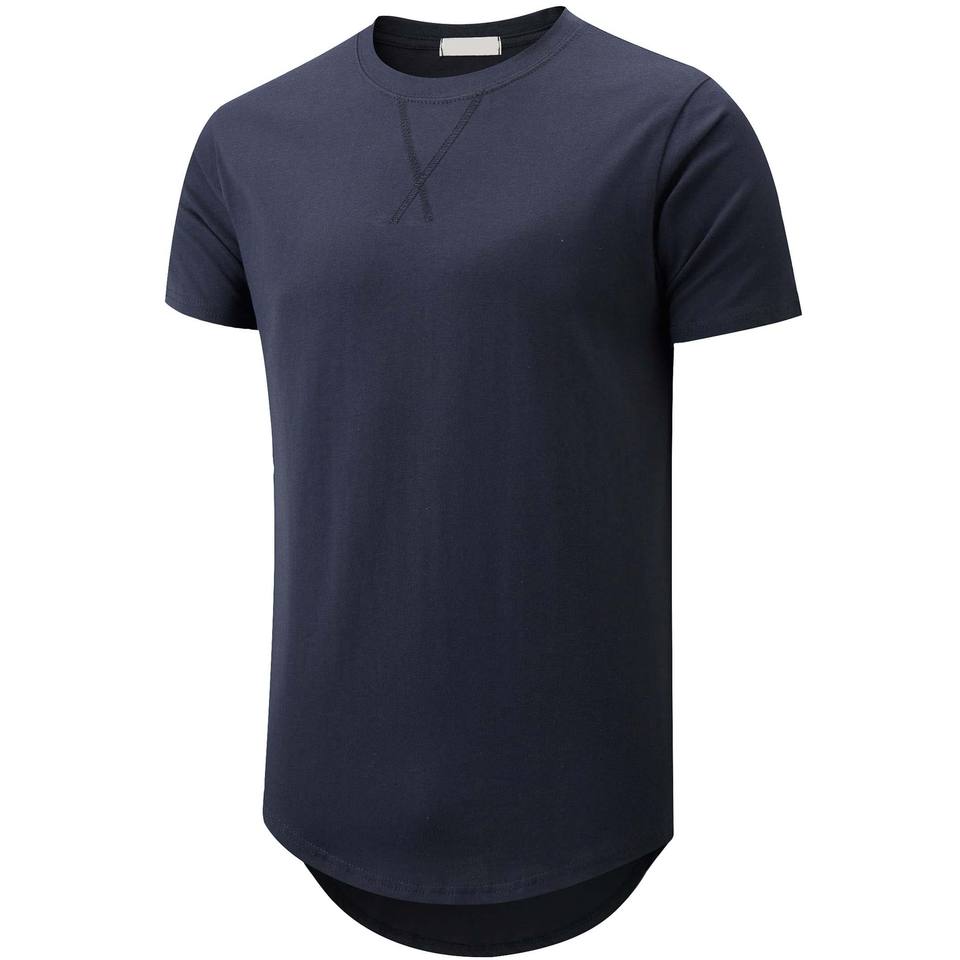 เสื้อยืดผู้ชายคุณภาพสูงทรงยาว คอหลังเว้า ระบายอากาศได้ดี ผ้าฝ้ายนุ่ม 220 GSM แขนสั้น มาตรฐานส่งออก โรงงานผลิต MOQ ต่ำ