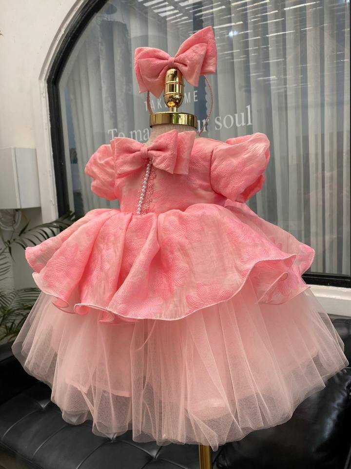 เดรสเจ้าหญิงผ้าตาข่ายสำหรับทารกแรกเกิดเด็กผู้หญิงดีไซน์3D ชุดคล้องคอพลาสติกแฟชั่นสูงผลิตในเวียดนาม