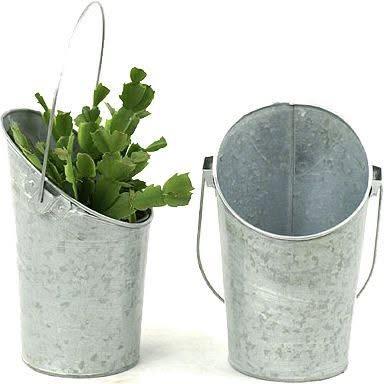 ถังเหล็กใส่ดอกไม้ทำจากโลหะมีที่จับทันสมัยถังเหล็กสำหรับตกแต่งบ้านและสวนสำหรับสถานรับเลี้ยงเด็ก