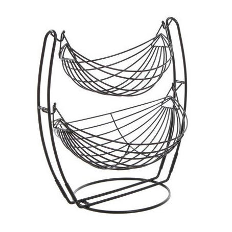 ตะกร้าใส่ผลไม้ทรงกลมโลหะคุณภาพสูง เป็นมิตรกับสิ่งแวดล้อม ดีไซน์ลวดเปิดพับได้เพื่อการจัดระเบียบในครัวที่มีการระบายอากาศ