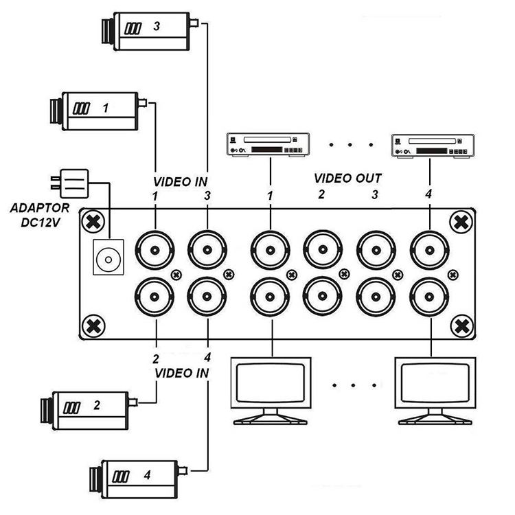 Video Output:BNC x 8, 75Ω, 1Vpp
