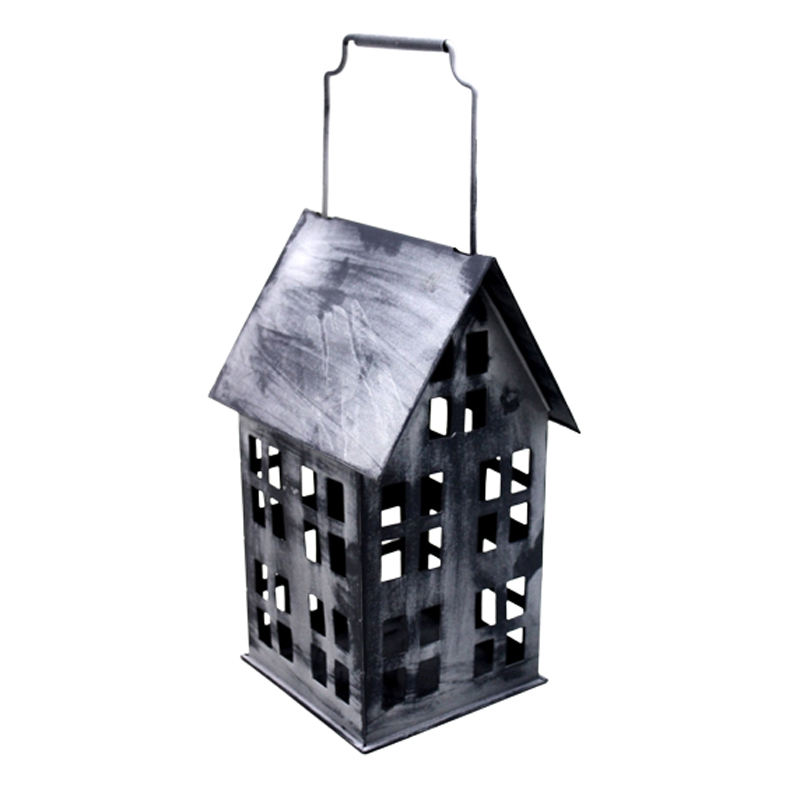โคมไฟโลหะรูปกระท่อมสีเทาโคมไฟเทียนสำหรับตกแต่งบ้านและบนโต๊ะทำด้วยมือจำนวนมาก