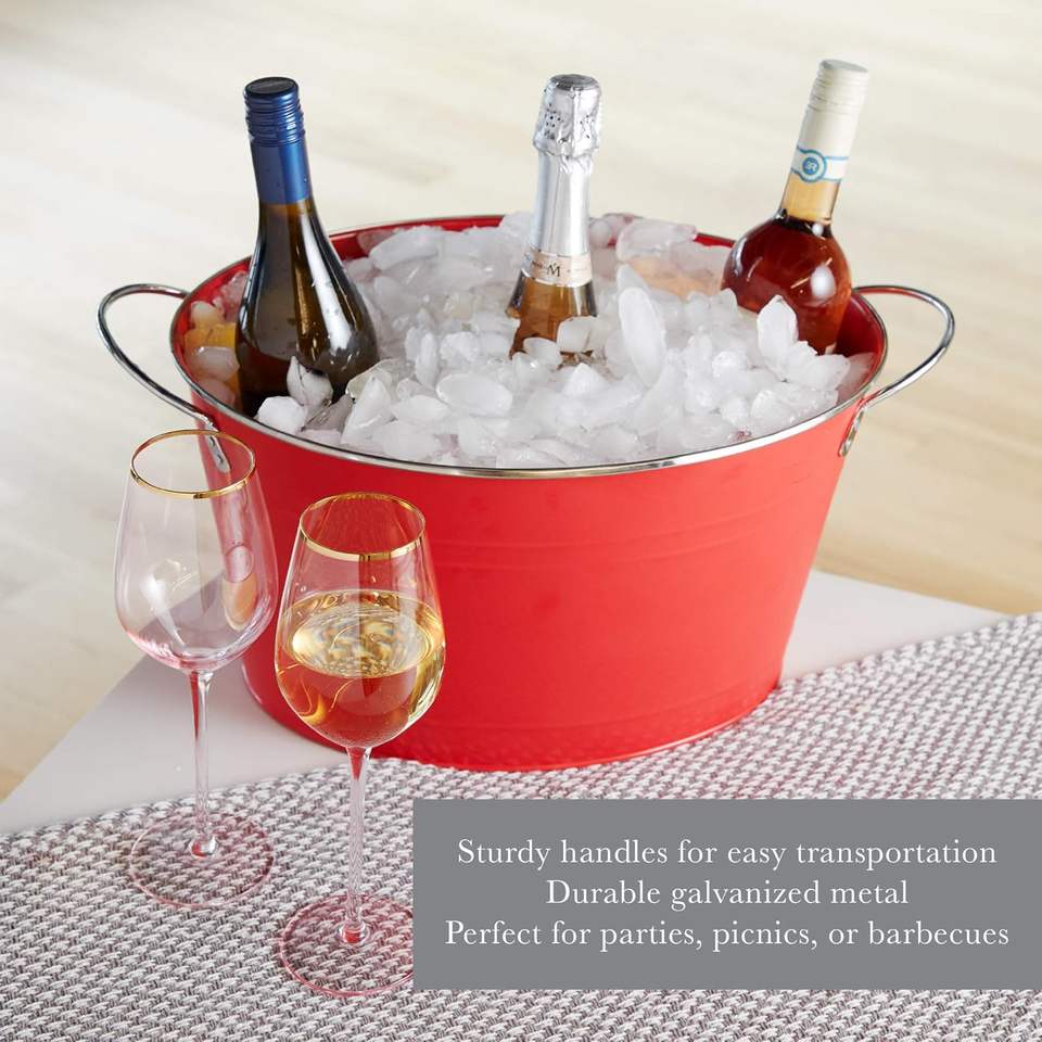 ถังน้ำแข็งโลหะทรงรีพร้อมด้ามจับตู้แช่ไวน์เคลือบสีแดงตู้แช่เครื่องดื่มสำหรับงานเลี้ยงงานแต่งงานงานเฉลิมฉลอง