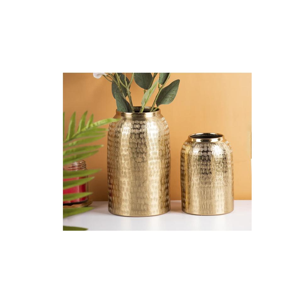 แจกันโลหะคุณภาพสูงพร้อมลายถักสีทองและงานแฮนด์เมดสำหรับตกแต่งบ้านโต๊ะแจกันดอกไม้