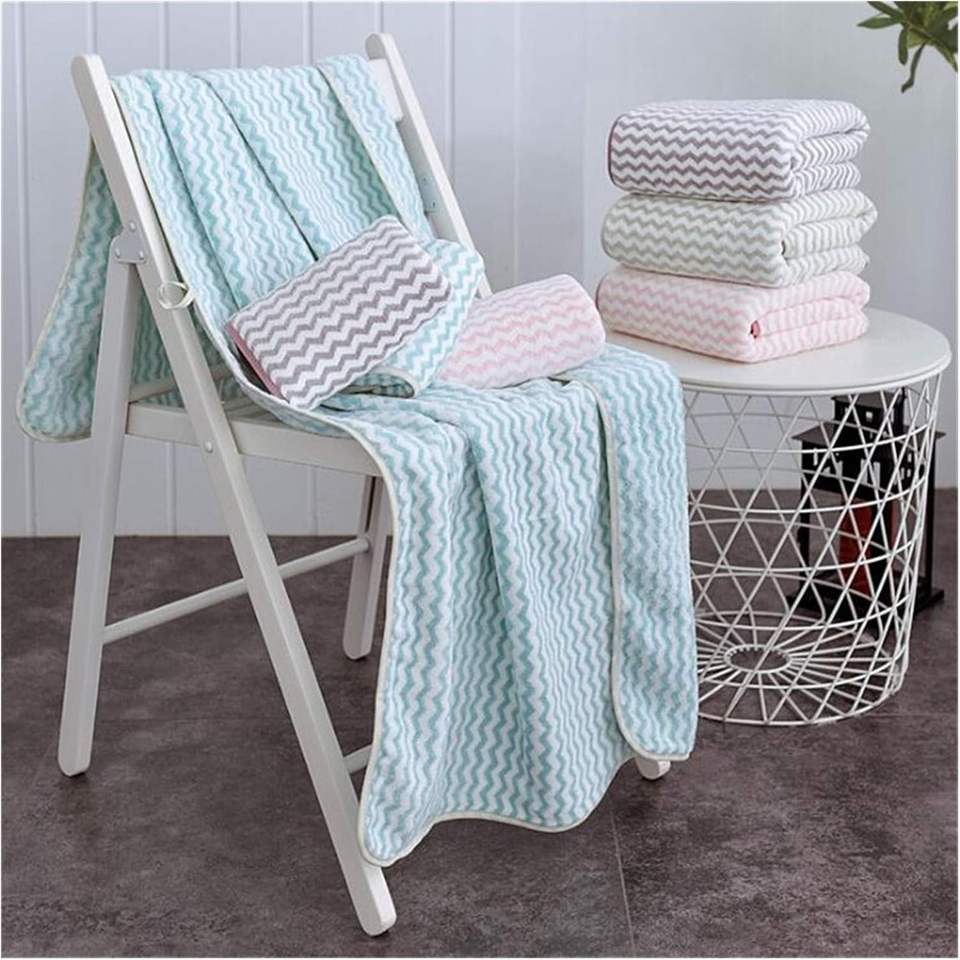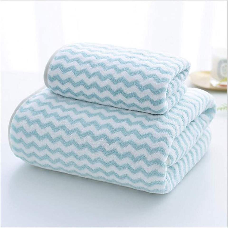 ชุดผ้าขนหนูสองชิ้นสำหรับเด็กผ้าขนแกะลายทางผ้าไมโครไฟเบอร์เนื้อนุ่มซับน้ำได้ดีแห้งเร็ว