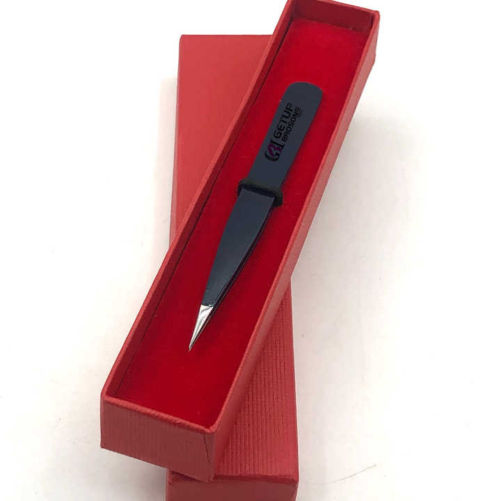 แหนบต่อคิ้วปลายสีเงินปลายแหลมเคลือบผงเที่ยงคืนใช้ทำโลโก้ได้ตามต้องการ