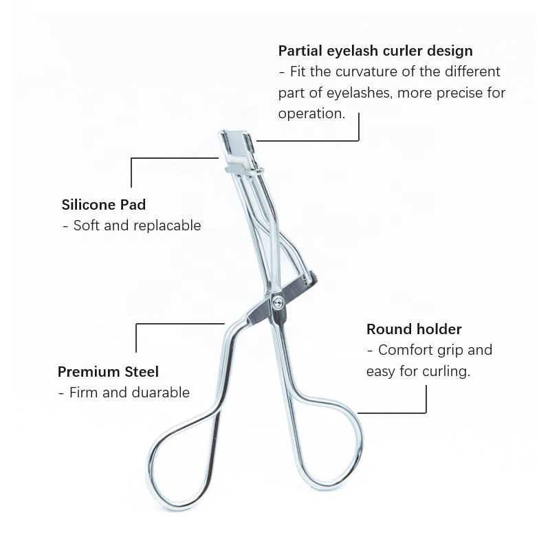 ที่ดัดขนตาสแตนเลสขนาดเล็กแบบใช้แล้วทิ้งพร้อมบรรจุภัณฑ์ฉลากส่วนตัวโลโก้ออกแบบได้ตามต้องการ