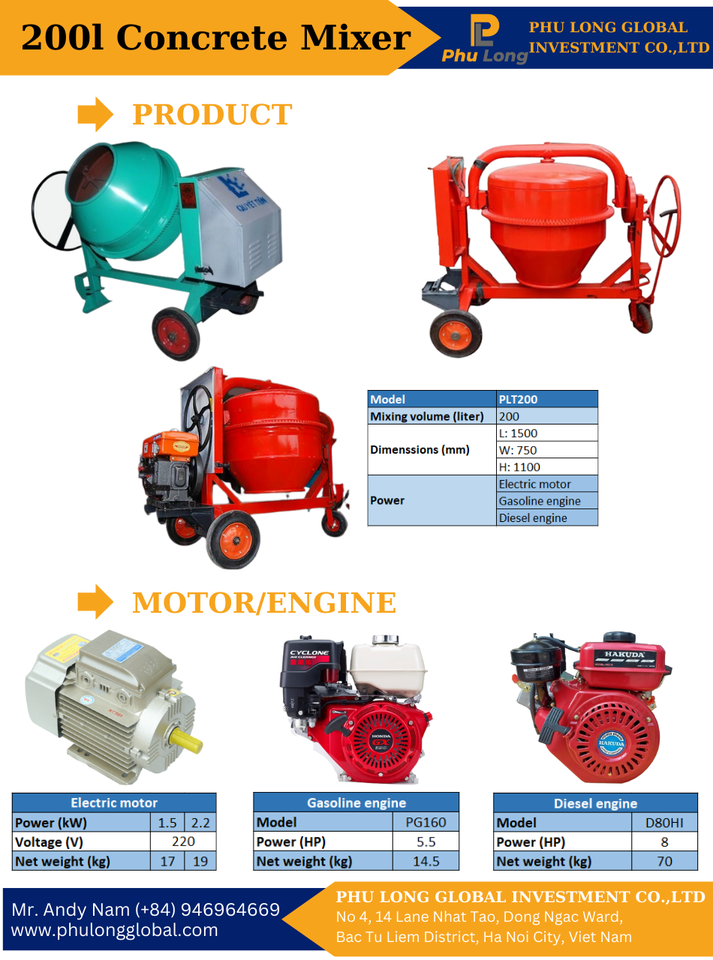 ปั๊มมอเตอร์เครื่องยนต์ดีเซลก่อสร้างบ้านขนาดเล็กบริการรับประกันที่ดีเยี่ยมสำหรับเครื่องผสมคอนกรีตพร้อมส่งจากเวียดนาม
