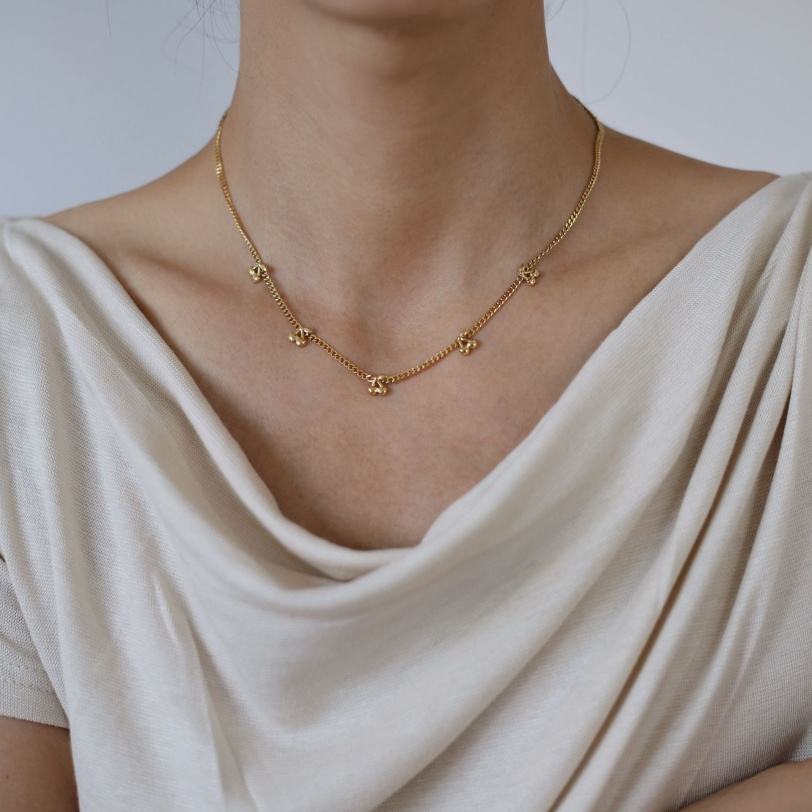 สร้อยคอเชอร์รี่สุดชิค สไตล์มินิมอล คุณภาพสูง ทำจากสแตนเลสสตีล ชุบ PVD สีทอง 18k สำหรับผู้หญิง