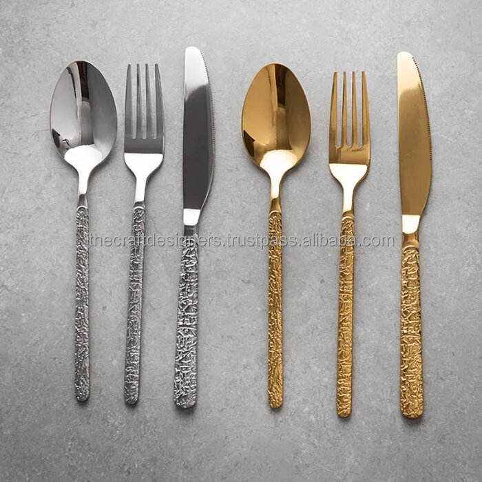 ชุดช้อนส้อมสแตนเลสสตีลเคลือบกระจกแบบไร้กาลเวลาชุดช้อนส้อมใช้ซ้ำได้ทนทานต่อรอยขีดข่วนและใช้กับเครื่องล้างจานได้อย่างปลอดภัย