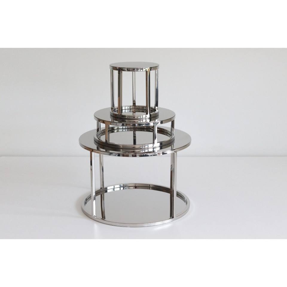 ที่วางเค้กกระจกสีเงินขัดเงาแบบชั้นวางสำหรับตกแต่งเค้กกันลื่น