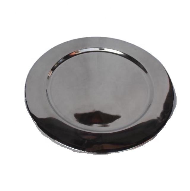 จานเหล็กขัดกระจกแบบไม่มีลวดลายจานชาร์จอาหารค่ำแบบกลมสำหรับงานแต่งงาน