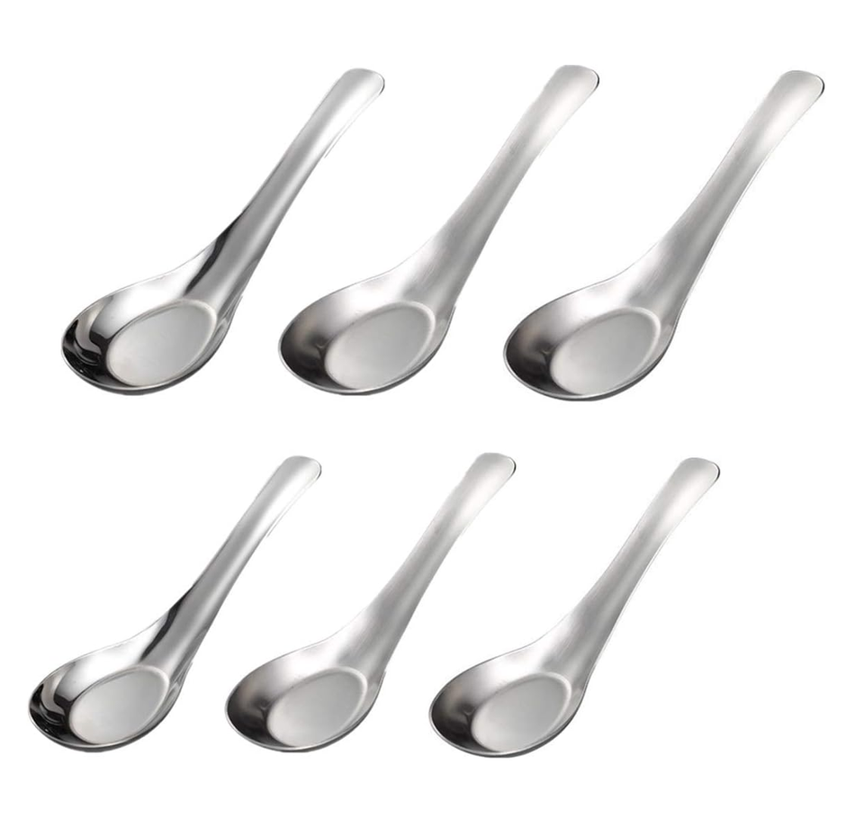 ช้อนซุปมิเรอร์สำหรับมื้อเย็นทำจากเหล็ก6ชิ้นช้อนซุปแบบบุฟเฟ่ต์สำหรับร้านอาหารสุดหรูงานฝีมือจากนักออกแบบที่ดีที่สุด