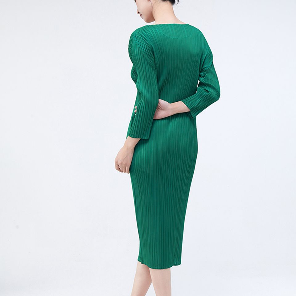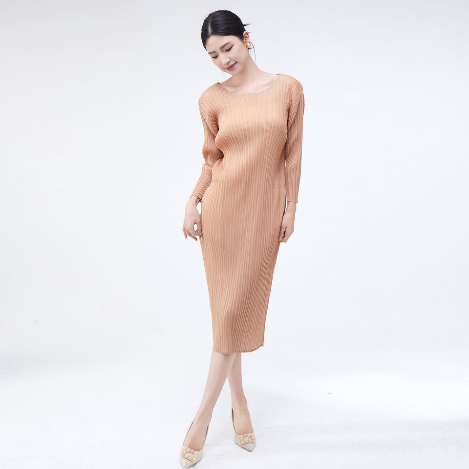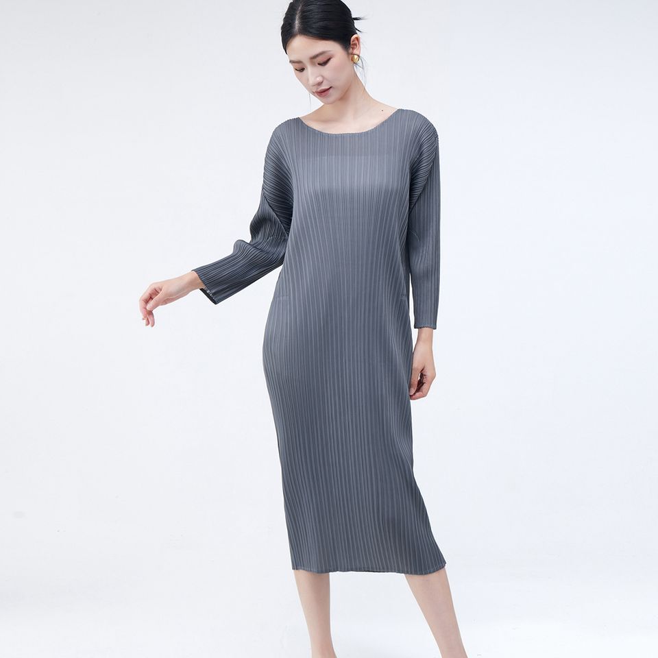 High Quality Miyake Pleated Dresses Women Spring 2025 Latest Solid Color Simple All-match Long Straight Hip Dress Clothes