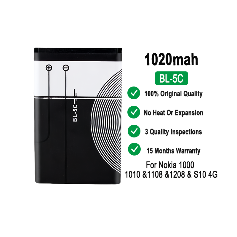 แบตเตอรี่โทรศัพท์มือถือคุณภาพสูงสำหรับ Nokia N73 X20 BL 5C G50 8210 3310 แบตเตอรี่ทดแทนของแท้