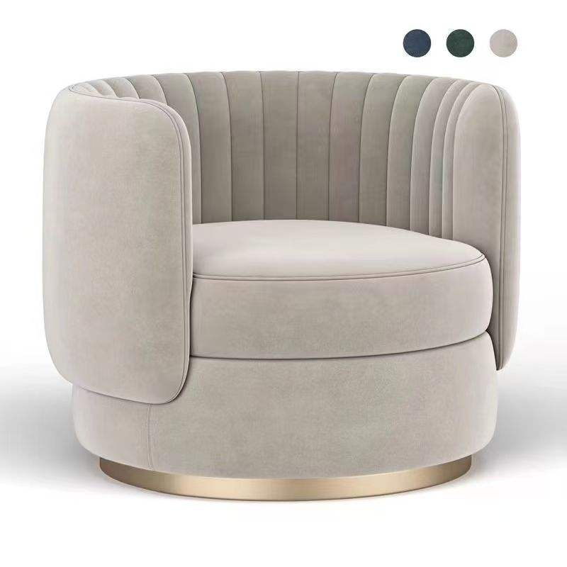 เก้าอี้พักผ่อนหมุนได้คุณภาพสูง ทันสมัย นั่งสบาย โครงโลหะ หุ้มกำมะหยี่ สำหรับห้องนั่งเล่น